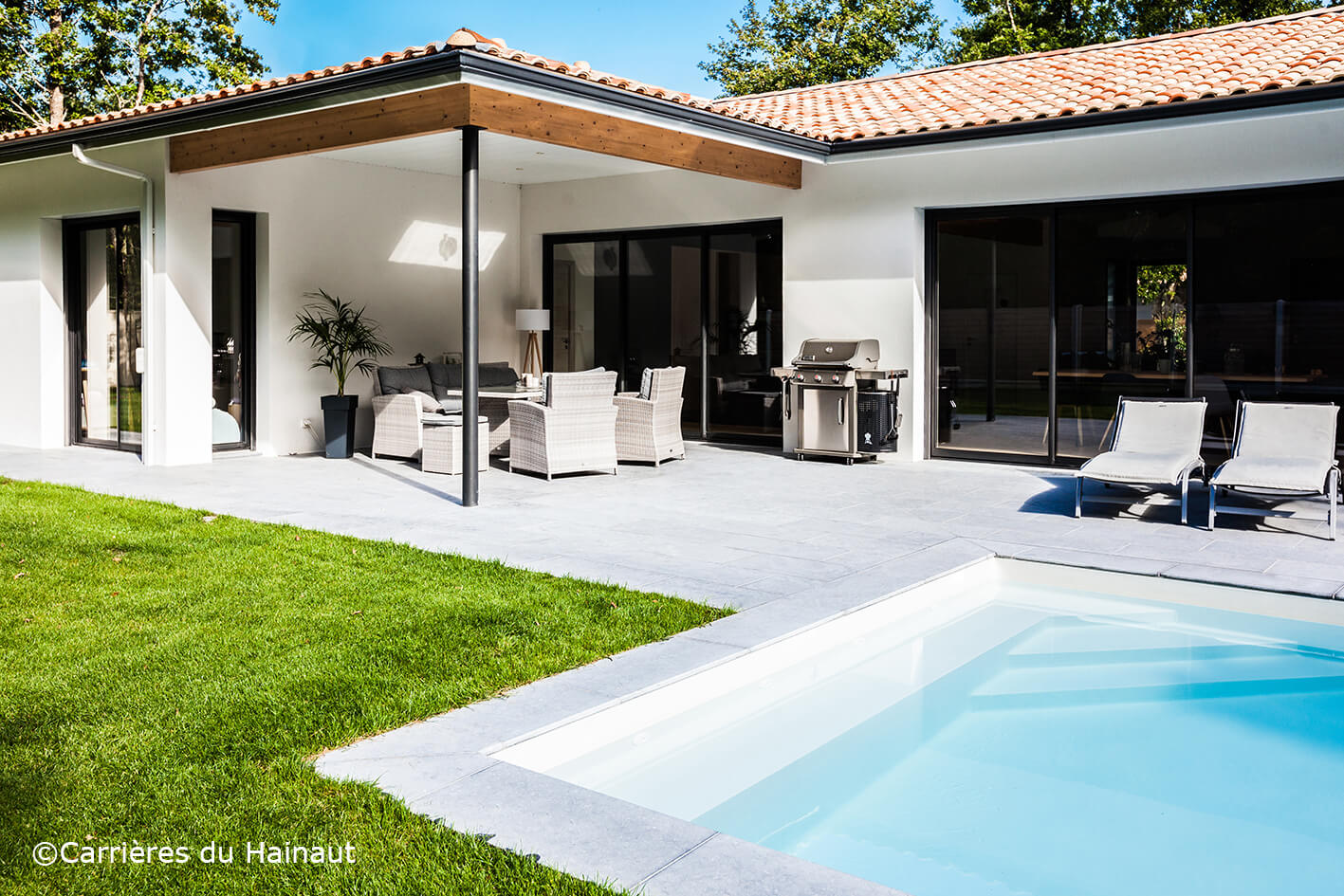 Margelles de piscine en pierre bleue